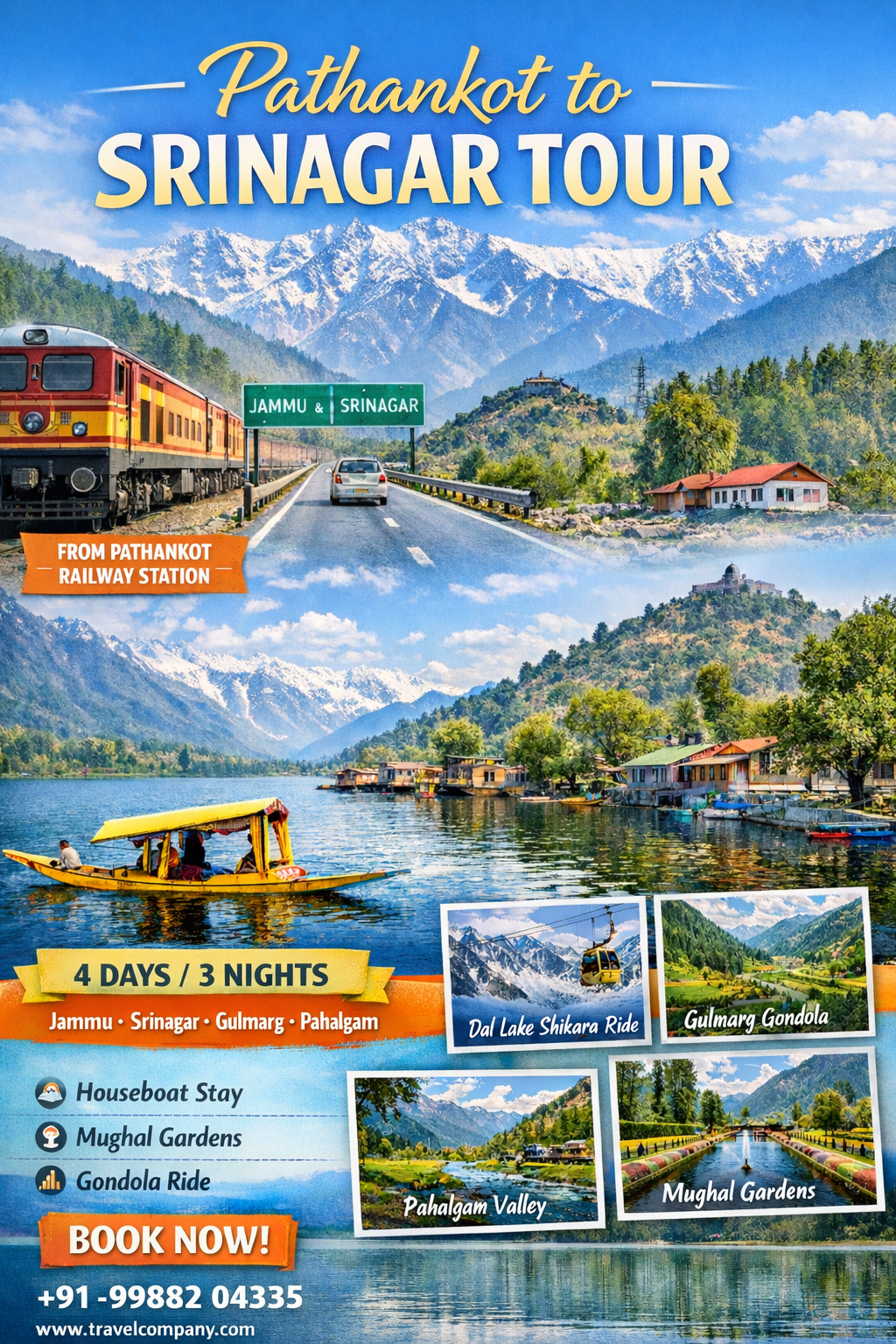Pathankot Railway Station to Srinagar Tour (4 Days / 3 Nights)